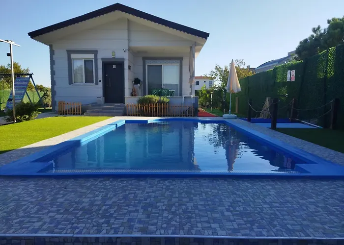 De gesitueerde in Belek Tiny Home Muestakil Havuzlu Ev biedt uitzichten op het zwembad.